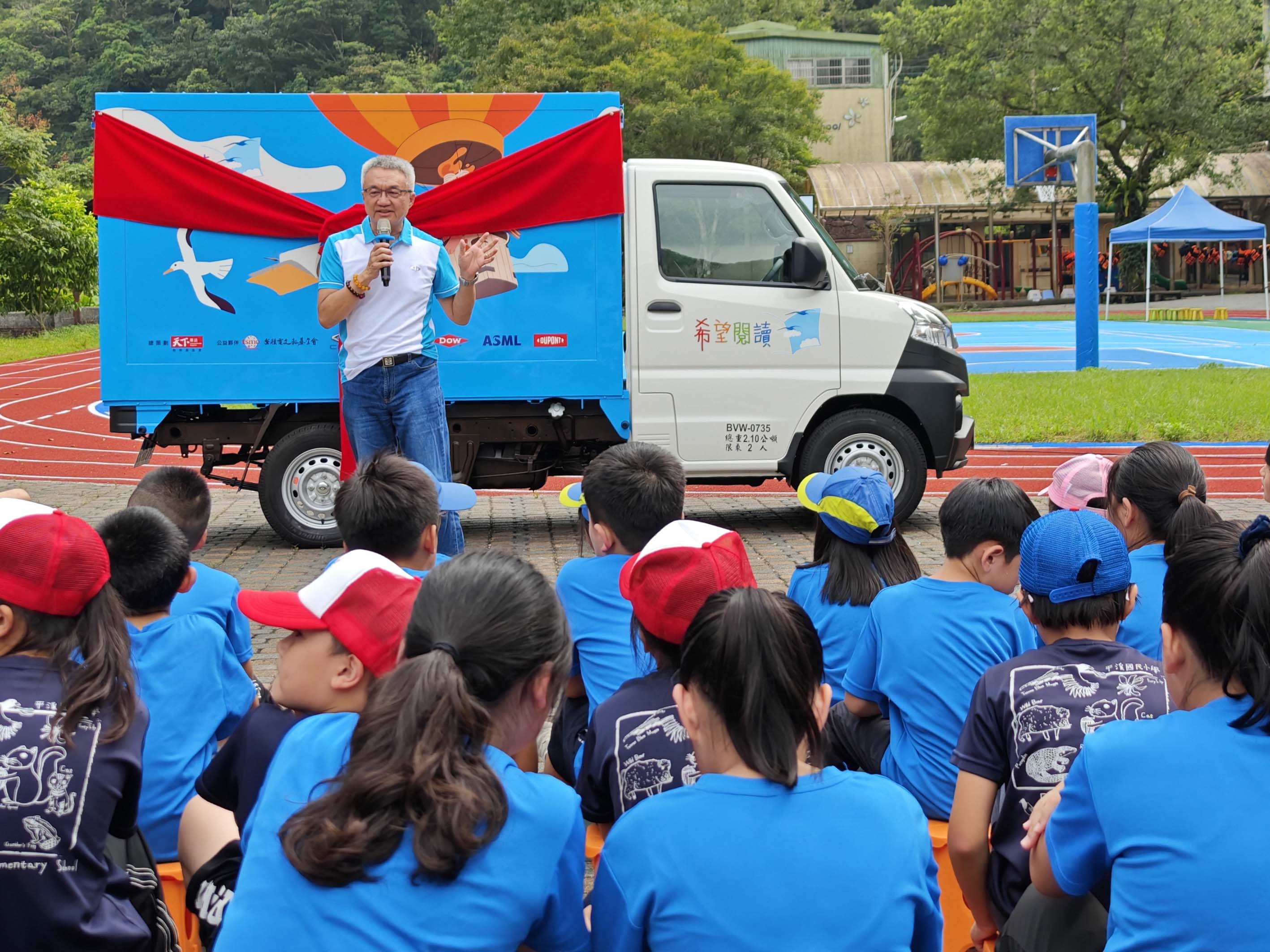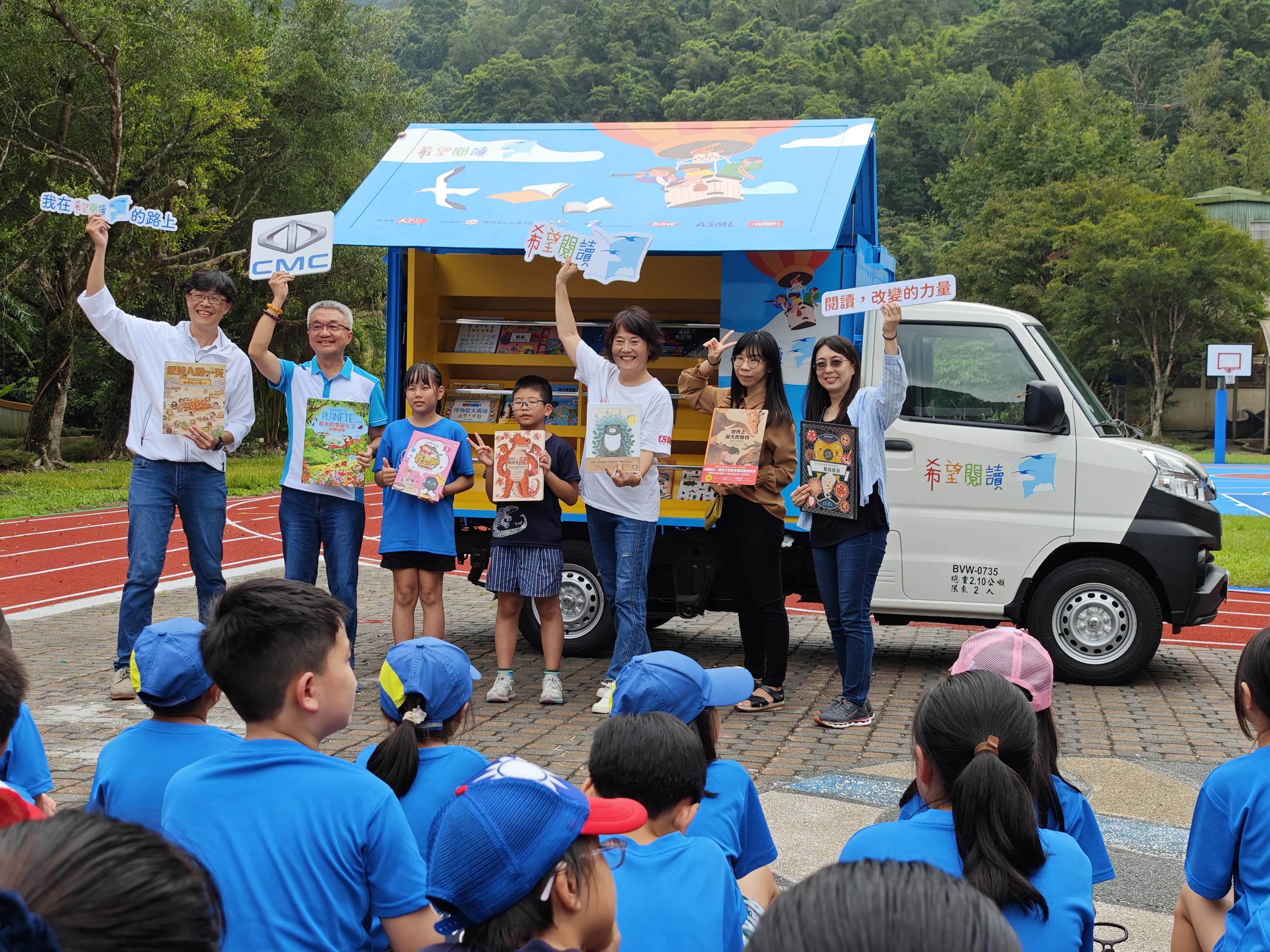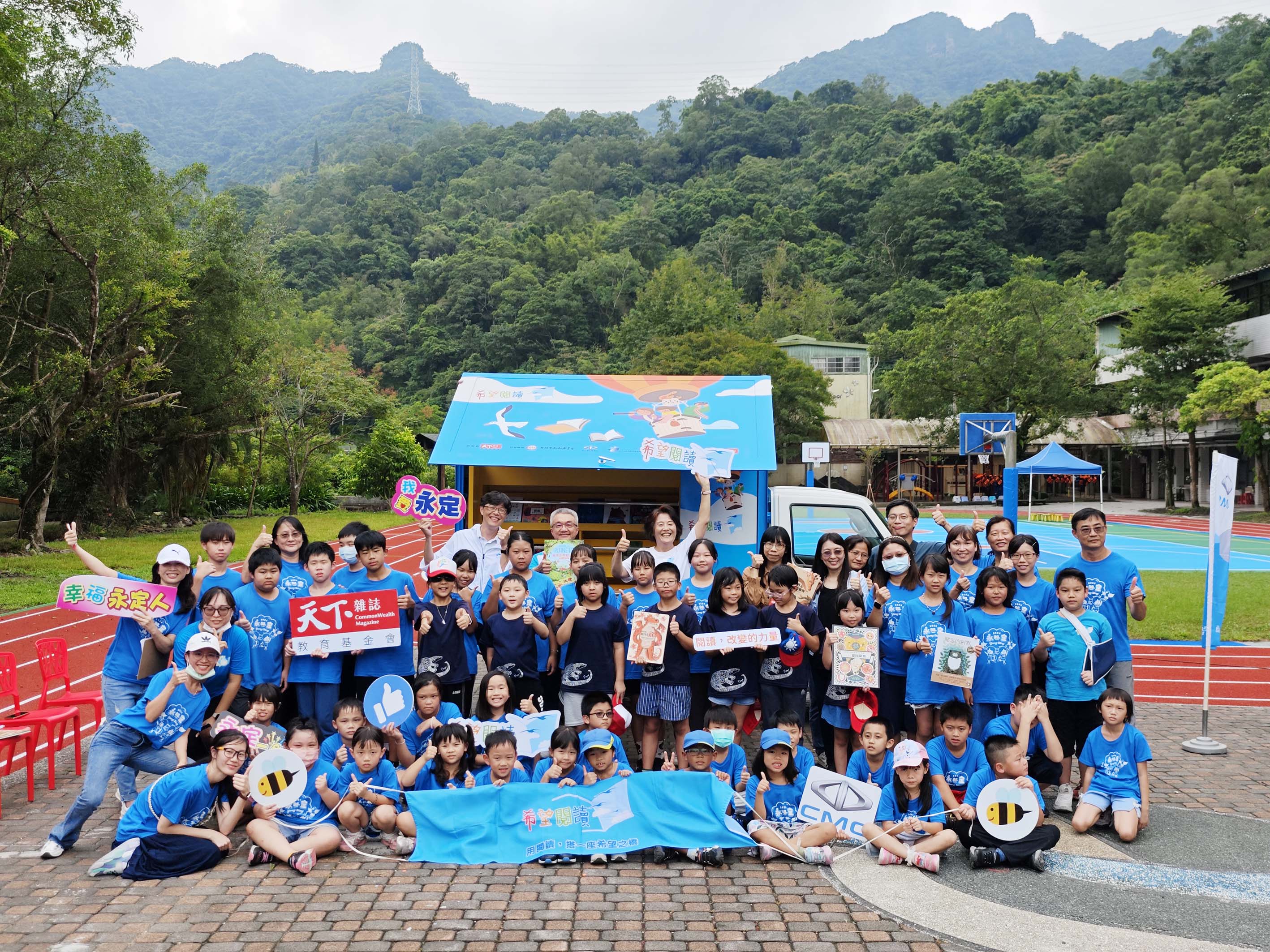 9/24特別於新北市永定國小舉辦「希望閱讀」六號車啟動儀式,當天在陳昭文總經理、凌爾祥執行長、永定及平溪國小師生見證下,共同為新書車揭幕。
