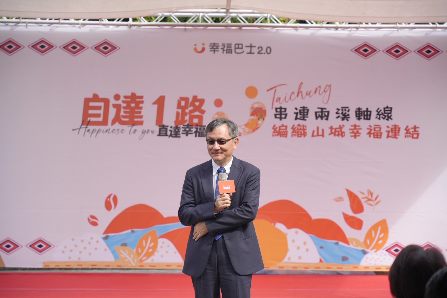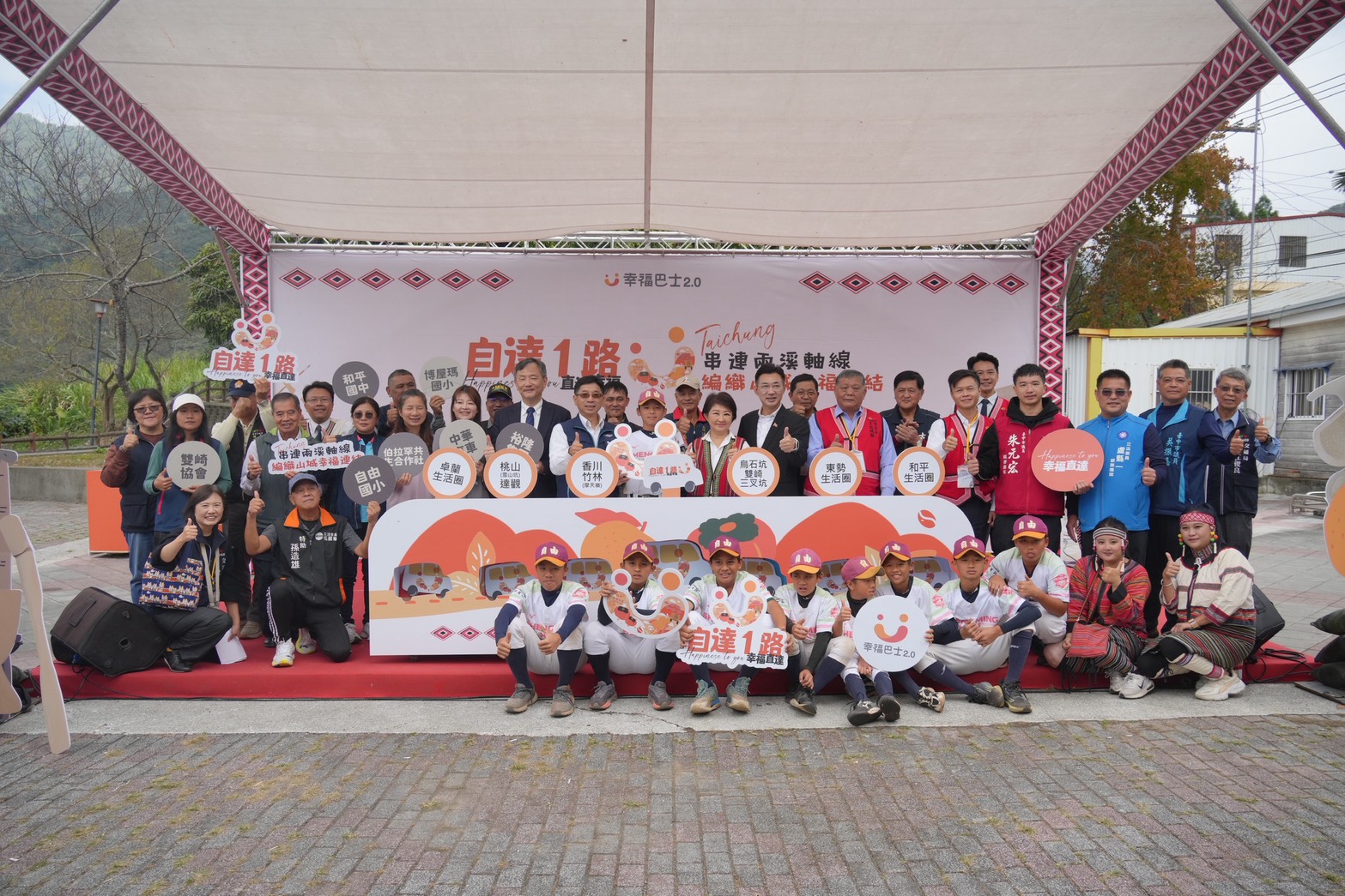 台中市政府今(28)日於台中和平區舉辦「自達1路-直達幸福」通車典禮,台中市盧秀燕市長、交通部公路局林福山局長、台中市交通局葉昭甫局長及中華汽車錢經武副總應邀出席典禮,並以「公私協力、在地同行」共同宣示「自達1路」正式通車,未來透過幸福巴士的運行將能串連大安溪、大甲溪兩溪軸線,補足沿線居民交通運輸的最後一哩路。活動中,台中市政府特別感謝裕隆集團、中華汽車、格上租車帶來豐沛的企業資源,以加滿行動為和平區注入幸福能量。