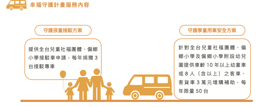 根據交通部統計,近年來每年有近萬名12歲以下兒童發生道路交通事故。中華汽車為照護偏鄉弱勢兒童,自2016年啟動「幸福守護計畫」,將車輛資源投入偏鄉部落,保護弱勢兒童行車安全。