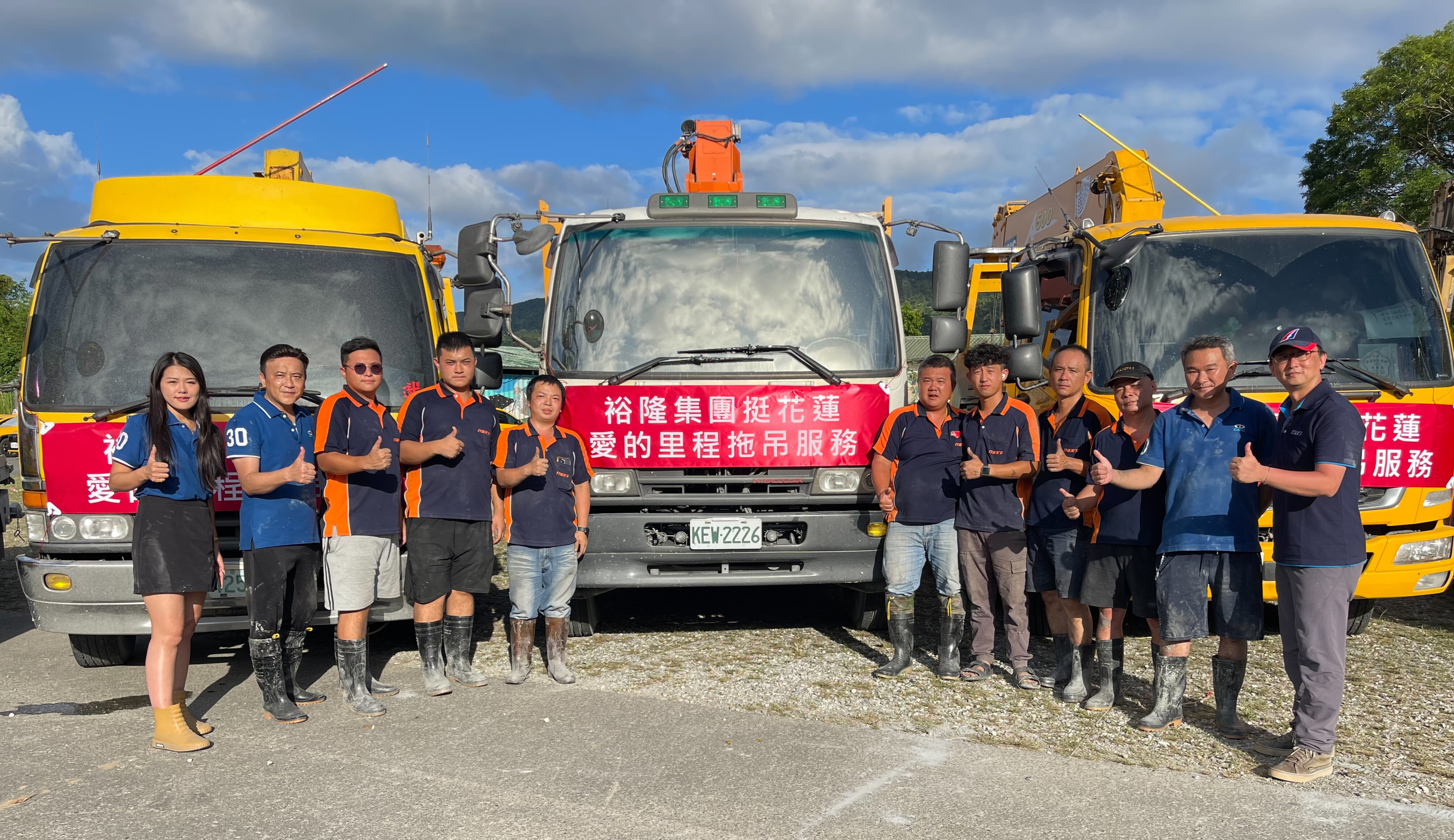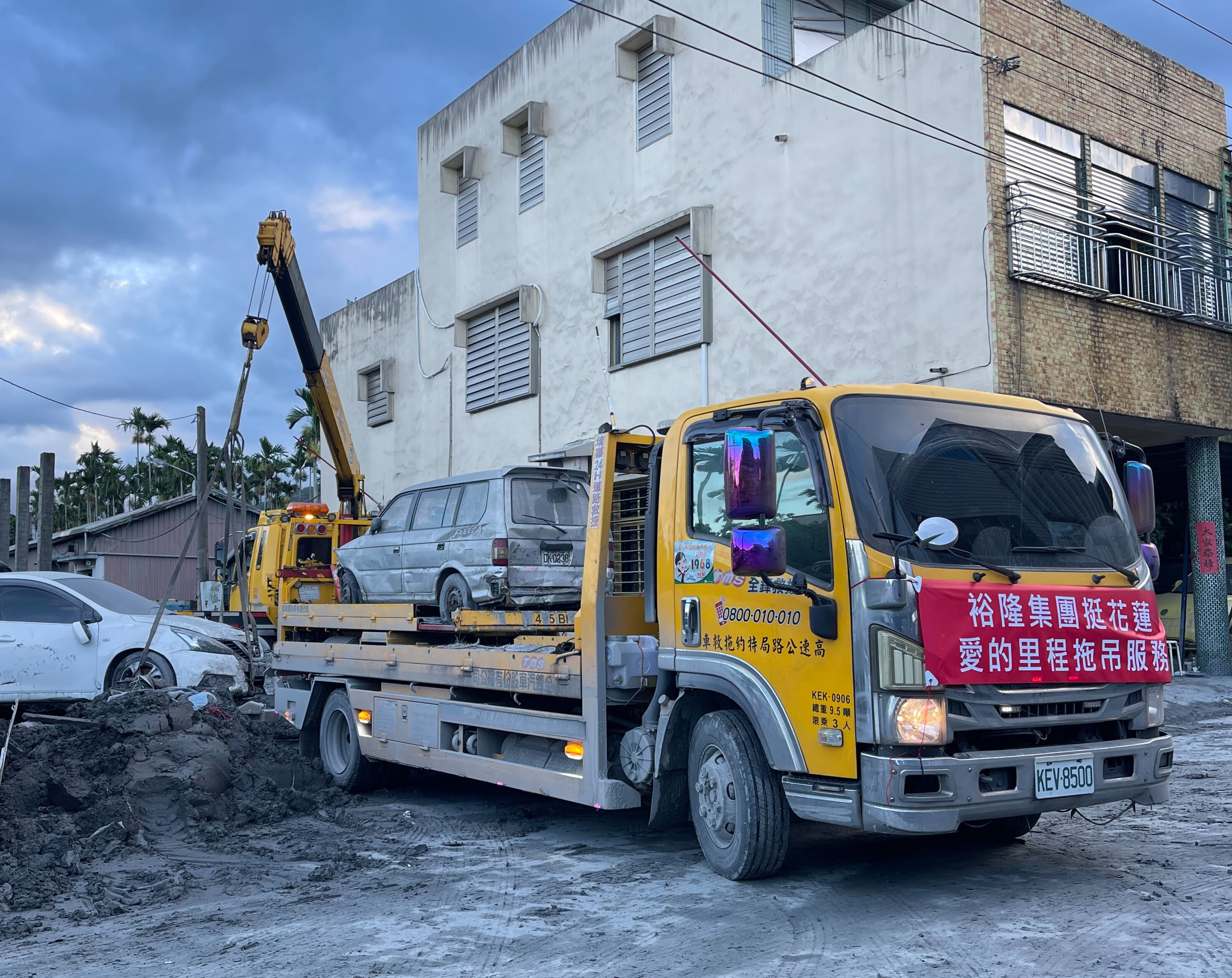 截至目前,裕隆集團「拖吊超人」車隊協助吊離中山路、中正路、光復路、林森路、敦厚街等主要幹道與巷弄間的泡水車輛,已累計逾百台。高效作業成功幫助災民與時間賽跑,快速清除道路障礙、清運廢棄車輛,讓花蓮光復鄉的災後救援工作更順暢、更有效率。