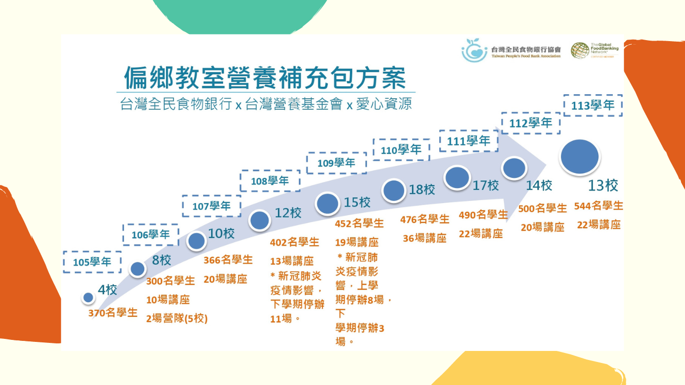 每所參與學校的學童人數預估在50人以內,針對規模較小的學校進行營養支持與教育資源投入。